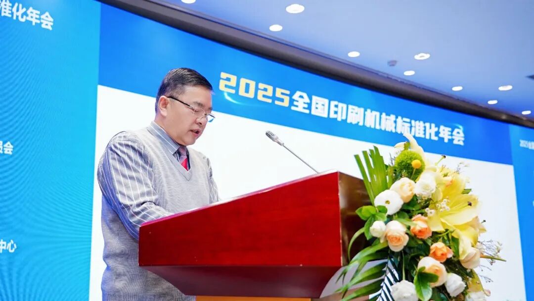 國(guó)際標(biāo)準(zhǔn)化組織印刷技術(shù)委員會(huì)主席、全國(guó)印刷機(jī)械標(biāo)準(zhǔn)化技術(shù)委員會(huì)主任委員、中國(guó)印刷科學(xué)技術(shù)研究院院長(zhǎng)趙鵬飛致辭。趙院長(zhǎng)首先對(duì)各位同仁的支持表示感謝,并回顧了標(biāo)委會(huì)近年來(lái)的工作成績(jī)。他指出,標(biāo)準(zhǔn)的意義在于提升貿(mào)易效率與促進(jìn)產(chǎn)業(yè)高質(zhì)量發(fā)展,是本土品牌參與國(guó)際競(jìng)爭(zhēng)的關(guān)鍵要素,呼吁企業(yè)一把手要高度重視標(biāo)準(zhǔn)化工作,增強(qiáng)標(biāo)準(zhǔn)意識(shí),積極投身標(biāo)準(zhǔn)建設(shè)與深度應(yīng)用。針對(duì)我國(guó)印刷設(shè)備在精密性、穩(wěn)定性等方面與國(guó)外仍存差距的現(xiàn)狀,他強(qiáng)調(diào)需通過(guò)產(chǎn)業(yè)鏈協(xié)同提升整體供給能力,以得到基礎(chǔ)實(shí)力的系統(tǒng)性提升。趙院長(zhǎng)進(jìn)一步表示,標(biāo)準(zhǔn)化是行業(yè)健康發(fā)展的基石,相信在大家的共同努力下,必將推動(dòng)印刷機(jī)械標(biāo)準(zhǔn)化進(jìn)程,為行業(yè)發(fā)展貢獻(xiàn)智慧與力量。
